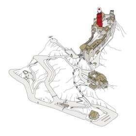 Der Bergfried ist der Hauptturm und das weithin sichtbare Symbol einer mittelalterlichen Burg. Der große Turm der Wartburg wurde zwischen 1853 und 1859 in unmittelbarer Nähe zu den Fundamenten eines mittelalterlichen Vorgängerbaus errichtet.